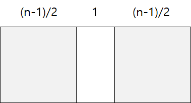 - n이 홀수인 경우 타일링 방법이 대칭이기 위해서는 항상 정가운데의 타일은 항상 세로로 하나만 놓여 있고 그 타일을 기준으로 좌우의 타일링이 대칭을 이루고 있는 경우이다.