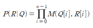candid = T[previousMatch][thisMatch] + M[thisMatch][R[segment]] + recognize(segment + 1, thisMatch)